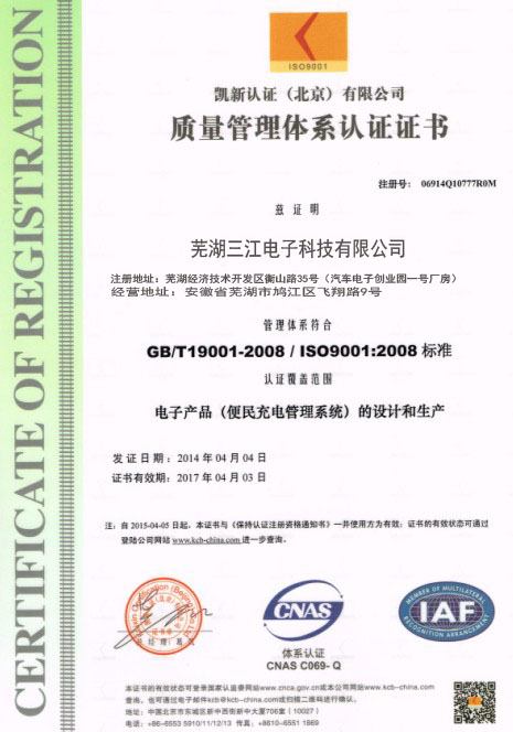蕪湖三江電子科技有限公司,位于美麗的江城蕪湖,是一家目前國內專業(yè)從事智能式自助產品的研發(fā)、生產、銷售及自助產品服務為一體的科技型企業(yè)。主要經營:電動車充電站,電動車充電站配件,小區(qū)充電站,便民充電站、投幣充電站、手機支付充電站、刷卡充電站、智能充電站、智能充電系統(tǒng)等。歡迎大家來公司參觀考察!公司秉承“顧客至上,銳意進取”的經營理念,堅持“客戶至上”的原則為廣大客戶提供優(yōu)質的服務。歡迎廣大新老客戶惠顧!
